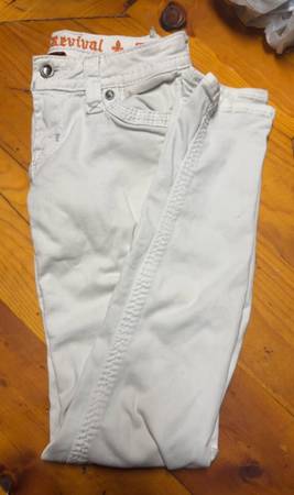 The white pair of jeans have some stains on them nothing major and can most likely be washed out if you put stain remover on them. They have only been worn maybe 2 times sense I got them.