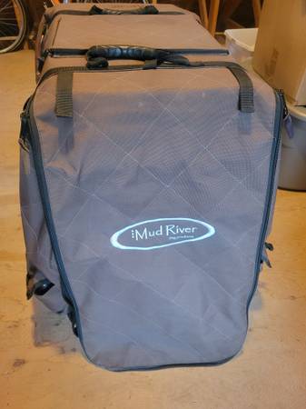 Medium Mud River crate cover. Heavy duty insulated brown polyester cover. This is the ultimate way to transport your hunting buddy! Features include: heavy duty non skid bottom, 4 tie down O rings to secure it in place, zippered/ roll up front flap over door, wind/water resistant w/ 2 ply insulated shell, two top side carry handles, 9 exterior pockets for accessories, removable window flaps, Microlite Insulation boosts interior temperature 20-40 degrees. This is top of the line and is in excellent shape. Includes crate. I also have a secondary crate available for an extra $25. Dimensions are approximate.